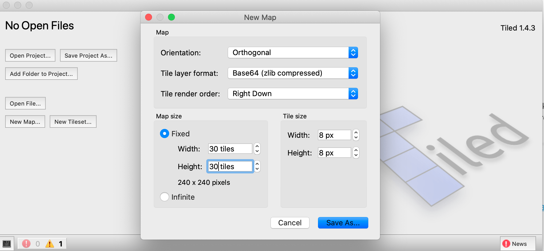 Tiled tutorial: Create a new tilemap step by step